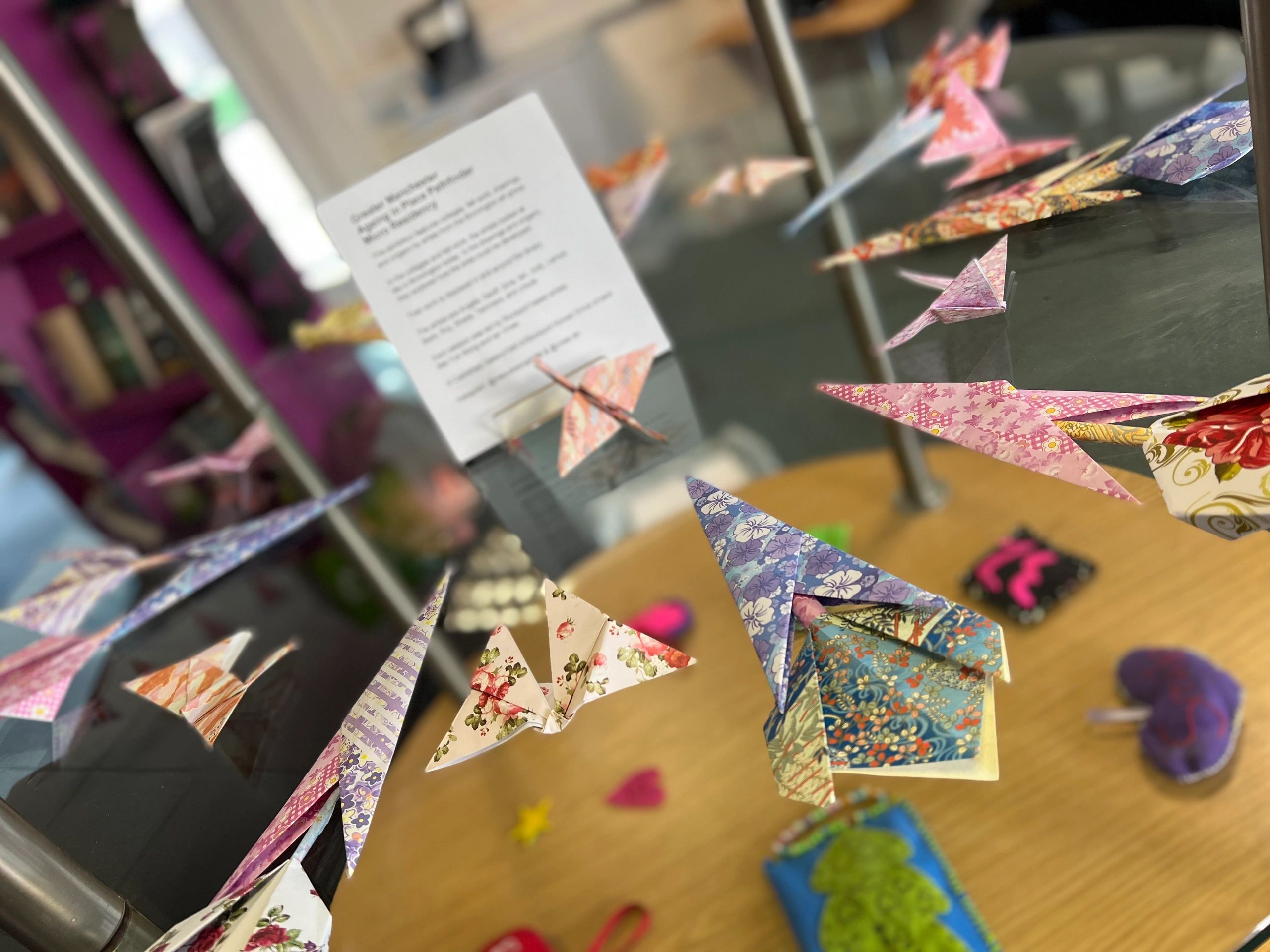 Leading an origami workshop, and co-curated an exhibition displaying artworks by a group of older people from Brinnington, Stockport. 2023.